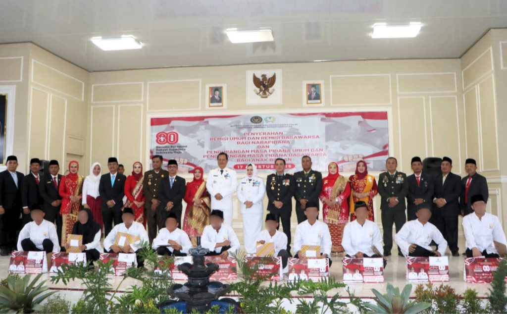 Koranparlemen.com | Muara Enim, Sumsel – Bupati Muara Enim, H. Edison, S.H., M.Hum., secara simbolis menyerahkan Remisi Umum (RU) dan Remisi Dasawarsah kepada 811 Warga Binaan Lembaga Pemasyarakatan Kelas IIB Muara Enim dari Pemerintah Republik Indonesia pada Peringatan Hari Ulang Tahun (HUT) Kemerdekaan Republik Indonesia ke-80 Tahun 2025 yang bertempat di Aula Lapas Kelas IIB Muara Enim, Minggu (17/08). Hadir bersama Wakil Bupati Muara Enim, Ir. Hj. Sumarni, M.Si., beserta unsur Forkopimda dan Kepala Lapas Kelas IIB Muara Enim, Mukhlisin Fardhi, A.Md., I.P., S.H., M.H., Bupati juga memberikan RU II atau bebas kepada 27 Warga Binaan.