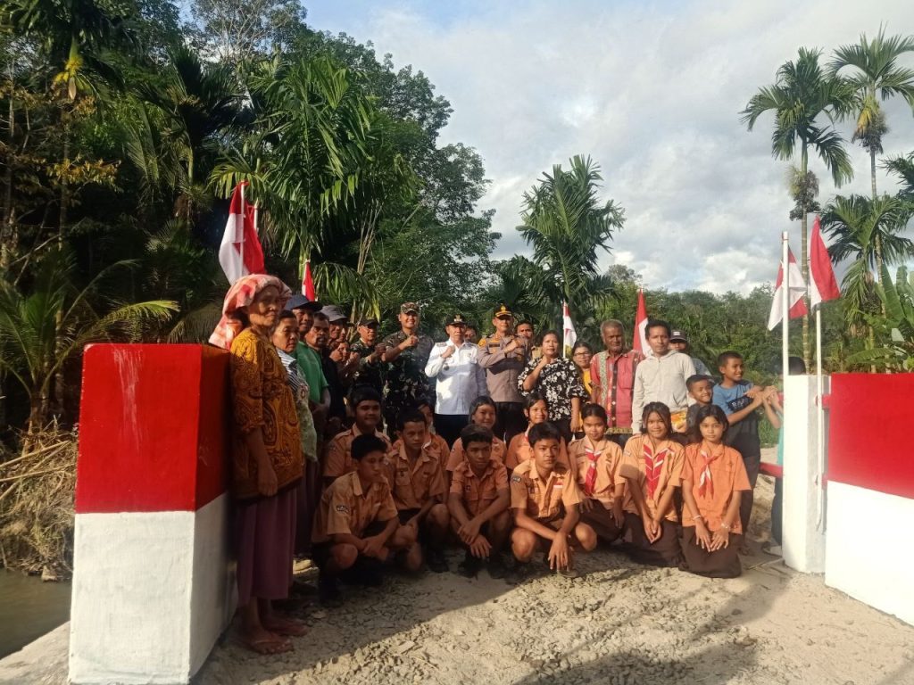 Pembangunan jembatan Aramco sebagai penghubung antara Desa dengan lahan pertanian/kebun masyarakat untuk mempermudah transportasi pengangkutan hasil panen masyarakat,” tutur Dandim.