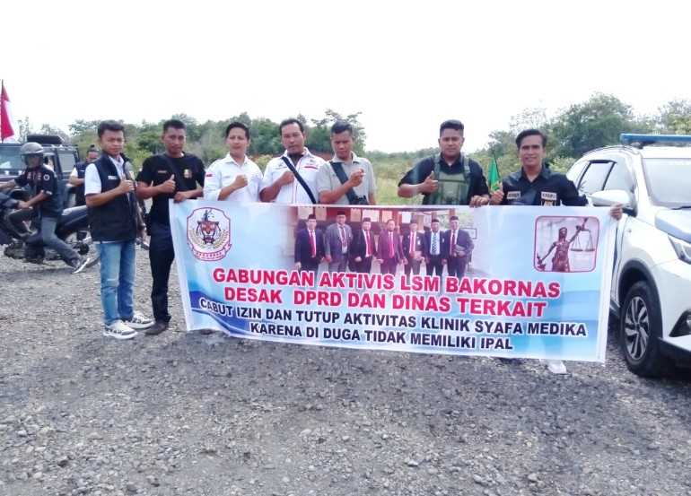 Feri Indra Leki selaku Kadiv Humas DPP LSM BAKORNAS yang juga sebagai pimpinan aksi menjelaskan bahwa berdasarkan informasi dan temuan yang diterima, Klinik Syafa Medika diduga belum memiliki IPAL sebagaimana diatur dalam Peraturan Menteri Kesehatan RI Nomor 9 Tahun 2014.