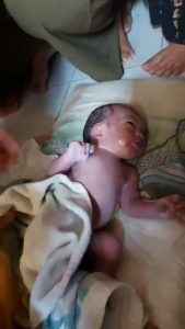 Bayi tersebut di temukan hanya di balut selembar kain dengan ari ari yang belum terputus dan beruntung bayi tersebut masih dalam keadaan hidup hanya kaki kiri yang memar.