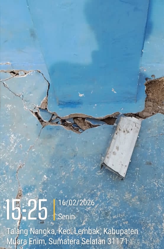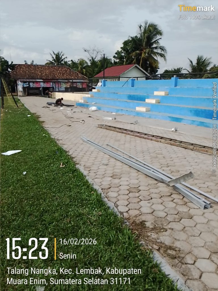 Koranparlemen.com | Muara Enim – Robohnya tribun lapangan sepak bola Desa Talang Nangka Kecamatan Lembak Kabupaten Muara Enim menimbulkan kecurigaan yang mendasar, ada apa..!!