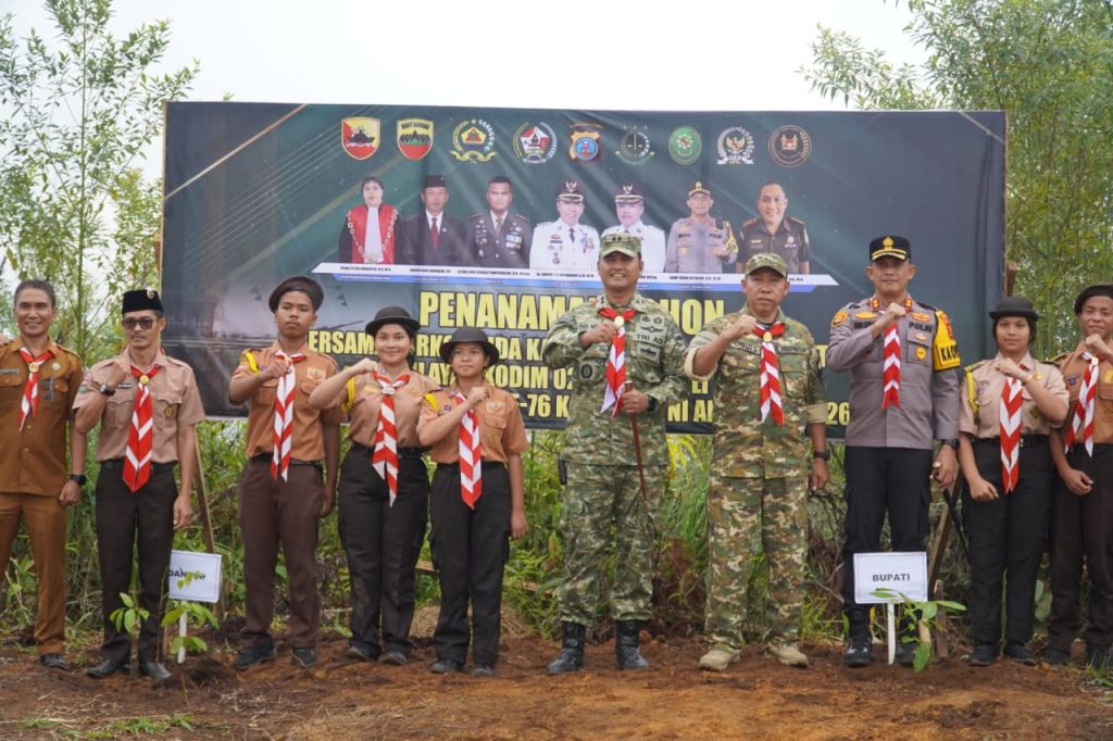 Kemudian Dandim 0210/TU Letkol Kav Ronald Tampubolon bersama Forkopimda melaksanakan penanaman pohon. ( DNM )