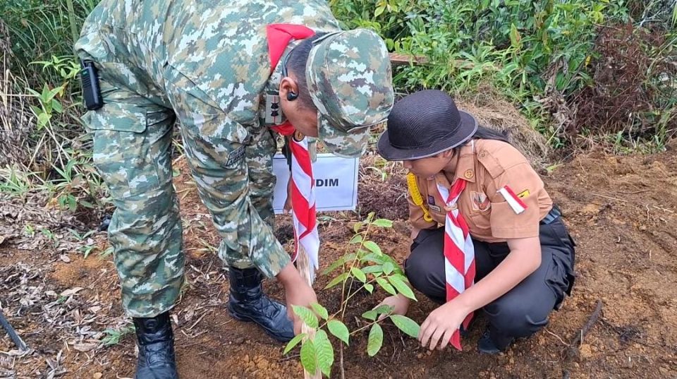 Dandim juga menyampaikan bahwa “Menanam pohon adalah menanam kebaikan. Sekaligus kita memperbaiki fungsi hutan, memperbaiki lingkungan hidup yang sehat, Karena alam ini merupakan warisan anak cucu sehingga kita harus sebanyak banyaknya menanam, sesering mungkin menanam.