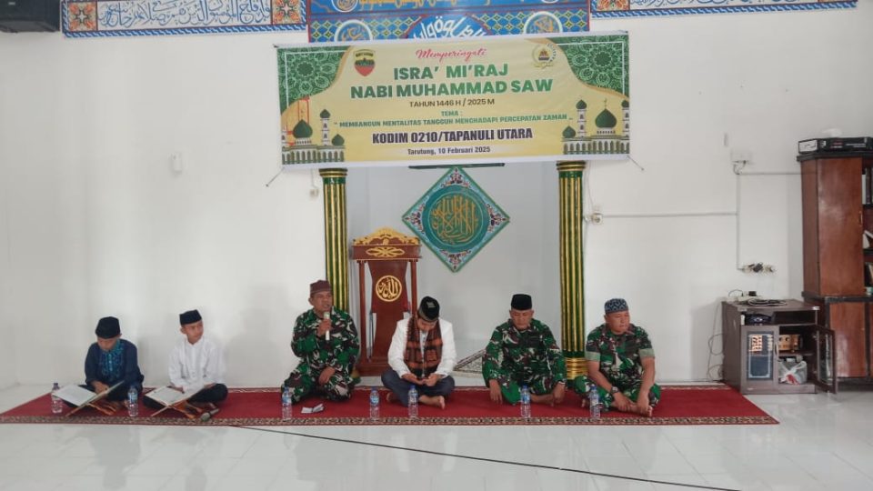 Koranparlemen.com | TAPUT – Komando Distrik Militer (Kodim) 0210/Tapanuli Utara selenggarakan Peringatan Isra Mi’raj Nabi Muhammad SAW tahun 1446 H/2025 M bertempat di Mesjid Al Ikhlas Kodim 0210/TU Jalan Kolonel Maringan Hutagalung Kelurahan Hutatoruan X Kecamatan Tarutung Kabupaten Taput, Senin (10/2/2025).