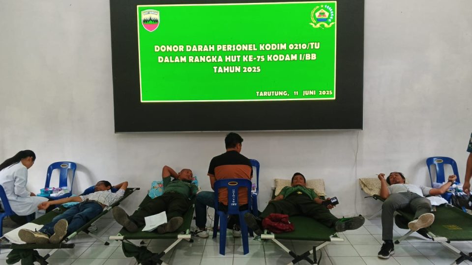 Koranparlemen.com | TAPUT – Kodim 0210/TU menggelar aksi sosial donor darah dalam rangka memperingati HUT Ke-75 Kodam I/BB, yang berlangsung di Aula Makodim 0210/TU Jln Letjen Suprapto Kecamatan Tarutung Kabupaten Taput Provinsi Sumatera Utara, Rabu (11/6/2025).