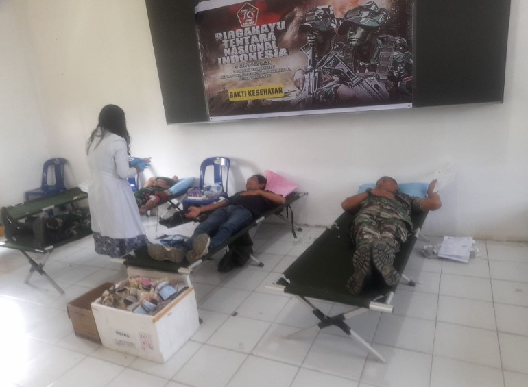 Kodim 0210/TU bekerja sama dengan Palang Merah Indonesia (PMI) Kabupaten Taput.