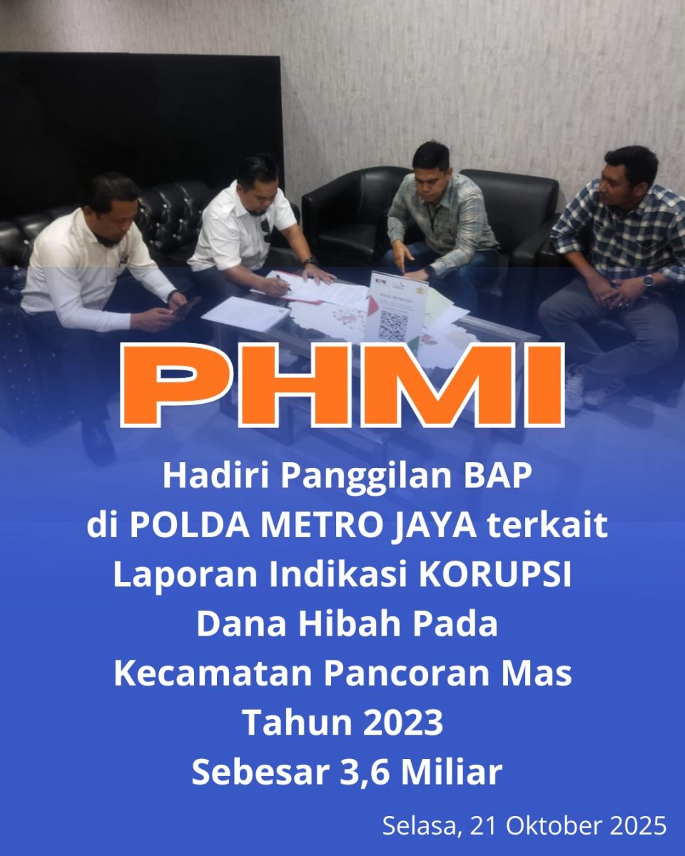 Sebelumnya PHMI melaporkan ke Direktorat Reserse Kriminal Khusus Polda Metro Jaya terkait dugaan Indikasi Korupsi pada Belanja Hibah Kepada Badan, Lembaga, Organisasi Kemasyarakatan yang Berbadan Hukum Indonesia Pada Tahun 2023. Laporan yang disampaikan oleh PHMI diterima secara langsung oleh pihak Direktorat Reserse Kriminal Khusus Polda Metro Jaya pada tanggal 25/9/25.
