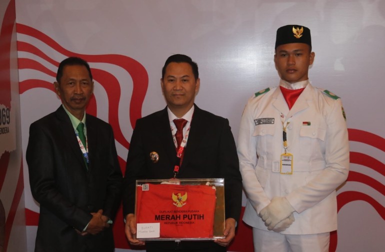 Koranparlemen.com | Muara Enim – Menjelang upacara peringatan Hari Kemerdekaan Republik Indonesia Ke-79 Tahun 2024, Pj. Bupati Muara Enim, H. Henky Putrawan, S.Pt., M.Si., M.M., menerima duplikat Bendera Pusaka yang diserahkan langsung oleh Ketua Badan Pembinaan Ideologi Pancasila (BPIP), Prof. Drs. KH. Yudian Wahyudi, MA., Ph.D., di Gedung Pertemuan Balai Samudera, Jakarta, Selasa (06/08). Duplikat Bendera Pusaka diserahkan Pj.Bupati kepada anggota Paskibraka Kabupaten Muara Enim untuk dikibarkan pada upacara peringatan Hari Kemerdekaan Republik Indonesia di Kabupaten Muara Enim, Bumi Serasan Sekundang, pada 17 Agustus 2024 nanti.