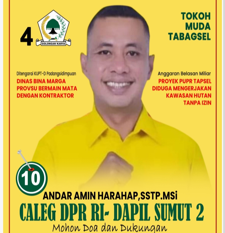 Koranparlemen.com | Tapsel, Sumut – Menurut rumor yang beredar di Kabupaten Tapsel Andar Amin Harahap, mantan Wali Kota Padangsidimpuan dan mantan Bupati Padang Lawas Utara, akan mencalonkan diri untuk menjadi Anggota DPR RI. Sebagai seorang tokoh muda Tabagsel yang berpengalaman di pemerintahan dan organisasi, Andar Amin Harahap tidak asing lagi bagi masyarakat setempat.