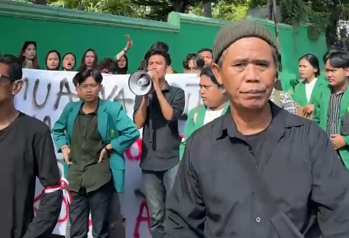 Ratusan mahasiswa Universitas Malahayati juga pada Senin (7/4/2025) melakukan unjuk rasa.