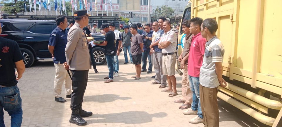 Kapolres Toba memberikan Arahan terhadap Supir Truck Pengangkut Logistik dan sekaligus melaksanakan Pengecekan terhadap Truck Pengangkut yang digunakan untuk mendistribusikan Logistik Pemilu tahun 2024 ke Tingkat Kecamatan.