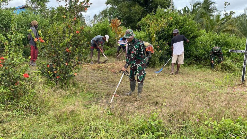 āDalam kegiatan tersebut Prajurit Siāmbisa bersama dengan masyarakat membersihkan semak, rumput dan sampah di areal pemakaman umum warga,ā ucap Danpos.