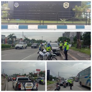 Terlihat sejumlah sopir yang berhenti dan kedapatan mangkal mencari penumpang di sepanjang Jalan Sisingamangaraja ditindak dengan sanksi tilang.